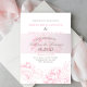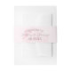 Una banda para el vientre rosa que presenta un monograma acentuado con peonías con los nombres de la pareja y la fecha de la boda. La suave banda rosa se superpone maravillosamente sobre la invitación floral a juego para una presentación pulida y cohesionada. Todo el texto del monograma de la banda para el vientre es totalmente personalizable.