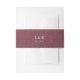 Termine sus invitaciones nupciales con estas bellas bandas de vientre para darle un toque de moda. Diseñadas para coordinar con nuestra colección de invitaciones nupciales en el Jardín Inglés de Marsala, las bandas presentan un patrón botánico de vinas en tono de tonos burdeos con sus iniciales y fecha boda en el centro.
