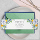 Un colorido y radiante invitación a la boda de bellezas con hermosas hojas de color agua verde botánico y eucalipto y elegantes flores blancas amarillas soleadas. Complete sus invitaciones de boda con esta elegante banda de invitación a la vientre floral amarilla, blanca y azul en monograma. Con un diseño sofisticado decorado con delicadas flores amarillas, suaves flores blancas y sutiles acentos azules, esta banda de la barriga le aporta un toque elegante y refinado a su suite boda. El detalle personalizado del monograma mejora su encanto atemporal, creando un aspecto muy bien coordinado. Perfecto para bodas de primavera y verano, celebraciones en el jardín o recintos de campo, esta banda de la barriada envuelve elegantemente sus invitaciones, manteniendo todos los gabinetes en su lugar, mientras añade un toque de romanticismo y sofisticación.