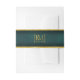 Esta interesante colección de bodas presenta efectos de iluminación intrigantes, follaje dorado y utiliza un tipo de letra manuscrita para añadir un toque moderno. La banda coordinadora del vientre que se muestra aquí tiene un estrecho borde dorado, un fondo verde oscuro y texturado y un diseño único para sus iniciales y fecha boda. Agregue sus detalles utilizando la plantilla proporcionada. Busque ID881 para ver otras opciones de color y piezas de coordinación para esta colección de bodas única.