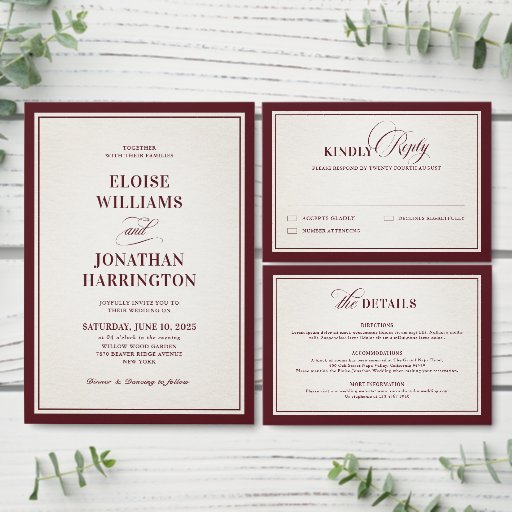 Cintas Para Invitaciones Old Money Modern Formal Burgundy Luxury Wedding