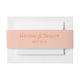 A very elegant and unique hand written whimsical wedding belly band. That matches the whole wedding hand written suite theme vibe. It has bright coral peach hand written script with colorful light peachy background. With hand written names and date above it.