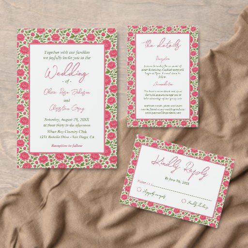 Añada un toque suave y romántico a su suite boda con esta flor florida banda de peones rosados. Con un encantador diseño floral con un elegante estilo vintage, es perfecto para envolver tu invitación, tarjeta RSVP e insertos, ideal para bodas en el jardín, temas primaverales, verano o amantes de las flores.