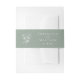 This sage green wedding invitation belly band features elegant modern typography and white botanical line art flowers. Personalize with names and wedding date. perfect for simple elegant botanical weddings or modern garden themed weddings.