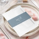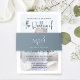 Este diseño presenta una sencilla banda de panes y panes en forma de monograma azul polvoriento, con una elegante invitación tradicional, un elegante guión de caligrafía a la moda, una elegancia romántica y sofisticados materiales de papelería boda, con un texto con iniciales monogramadas, una elegancia mínima minimalista simplista, elegancia simplista blanco y azul, letras de estilo de bloques creativos, suite de papel para invitados a la boda