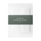 This wedding invitation belly band features a minimalist design with a deep forest green background and clean, modern typography. The layout is simple and balanced, with centered text that provides ample negative space for an elegant look. Customizable placeholders allow you to easily personalize the date, names, and location, making it perfect for your special day. The understated sophistication of this design conveys clarity and refinement, ideal for formal occasions where simplicity is key.