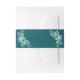 These teal wedding invitation belly bands feature a rich teal backdrop adorned with soft watercolor florals and greenery on each side, creating a romantic frame around your stacked invitation suite. They add a polished, coordinated finishing touch that keeps your invitation, RSVP, and enclosure cards neatly bundled for a cohesive presentation.