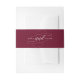 Estas sorprendentes bandas bodas de la barriga presentan textos blancos y caligrafía en un fondo de color marsala/burdeos. Perfecto para un boda formal y tradicional con un giro moderno.