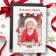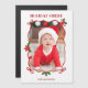 Marco de cinta roja curvada, audaz y festivo, decorado con arcos y Navidades florales con una plantilla de foto de aspecto retrato, gráfico de texto "Cheador de vacaciones" en letra decorativa personalizado y campos de texto editables. La parte posterior incluye una plantilla de fotografía cuadrada de cinta roja adicional y campos de texto.