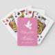 Una simple paloma de paz blanca con dos cintas de color rosa boda jugando a las cartas. Personalizar con los nombres y la fecha de su boda. Diseñado exclusivamente por Sarah Trett.