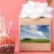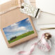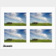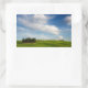 Pegatina fotográfico rectangular de un grupo de cipreses en un paisaje con colinas verdes y flores amarillas bajo hermosas nubes blancas cerca de Torrenieri en el Val d'Orcia (valle de Orcia) en Toscana, Italia.