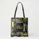 Diseño moderno con el cierre de un tablero de circuitos informáticos en amarillo, negro y blanco. Bolsa con un diseño de personalizable para que puedas personalizar con tu propio texto, imágenes e ideas. Creado usando una fotografía original y técnicas digitales de Jess Perry.
