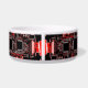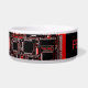 Diseño de Guay que incluye el cierre de un tablero de circuitos informáticos en rojo y negro, y el nombre de tu mascota escrito en rojo. Mascota bowl con un diseño de personalizable para que usted pueda personalizar con su propio texto, imágenes e ideas. Imagen creada utilizando una fotografía original y técnicas digitales.