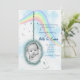 Este el círculo adorable con el arco iris en una invitación de la FOTO y del nacimiento de la nube se imprime en un papel liso, vibrante, mate clasificado 5x7 del peso de la cubierta 110lb. Contiene el contenido reciclado el 50%. Perfeccione para cualquier fiesta de bienvenida al bebé, nupcial, el bachelorette, el boda, o la invitación del cumpleaños.
