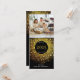 Esta tarjeta de felicitación por fotos de Año Nuevo presenta un patrón circular de luces brillantes de tono dorado contra negro rico, creando un marco circular para la indicación del año. Añade tu propia foto de arriba y un mensaje personalizado en la parte inferior. La mandala de oro se repite al revés. El texto de la parte posterior puede editarse o eliminarse para dejar el texto en blanco. Disponible con productos a juego.