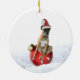Un adorno de cerámica con una fotografía de un boxeador de Brindle con un sombrero de Santa