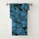 Esta toalla de baño presenta un diseño moderno con círculos azules sobre un fondo negro. Arte digital. ¡Maravilloso para tu cuarto de baño, también una idea de regalo de bonito para cualquier ocasión!