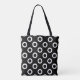 Esta bolsa negra de tetas está cubierta de círculos blancos para un aspecto moderno.