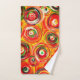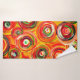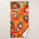 Círculos Cálidos Luminosos Y Toalla De Baño Resumen Original. Los círculos y los giros, alegres y veraniegos brillan en un patrón de retorcido. La fuerza de vida y el ciclo de tiempo se representan con un flujo de formas redondeadas. Colores vivos, cálidos y excitantes, tonos amarillos, naranjas y rojos se aplacan con verde y armoniosos con el blanco. Esta obra de arte original está pintada a mano en acrílico por la artista Aleksandra Grbic Hrústico. Derechos reservados. Cuarto de baño Toallas con actitud. El arte original, único, colorido y llamativo es la pareja perfecta para tu baño.