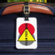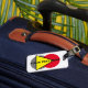 Los círculos únicos de doble color (rojo y gris mostrado) y el símbolo de precaución amarillo se pueden personalizar a cualquier color que se desee junto con cualquier texto (iniciales, palabras, etc.) para que se destaquen verdaderamente cuando se reclame el bolso. Se pueden añadir más círculos o ir con sólo uno (aunque pensamos que se ve bien como está el bonito). Los círculos gemelos con símbolo de precaución son un diseño de Ken-Ray y serán extremadamente identificables en tu(s) bolsa(s).