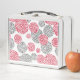 Círculos con piel de leopardo gris y rojo impreso en un fondo blanco