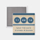 Moda y modernos círculos de moda Salven el imán de fecha con un fondo de papel falso texturizado, una banda de rayas audaces y tres círculos divertidos sombreados en los que añadir su fecha boda. ¡Este diseño moderno es fácil de personalizar con los detalles de su futuro boda! Haga clic en el botón "Personalizar" para jugar con fuentes o colores de texto.