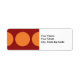 Personalizar las etiquetas de la dirección de retorno escribiendo su dirección postal en la barra lateral. Este patrón geométrico audaz presenta un punto naranja grande en el centro y dos círculos medios naranjas en los bordes de un fondo rojo. Si desea añadir un monograma o una imagen al diseño, haga clic en el botón "Personalizar". Imagen creada digitalmente. Copyright © 2011 Claire E. Skinner. Todos Los Derechos Reservados.
