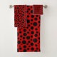 círculos negros de tamaño aleatorio con fondo rojo oscuro.