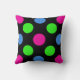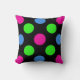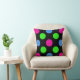 Festividad y diversión es la mejor manera de describir esta almohada de los círculos de los puntos polka. Esta almohada cuadrada de poliéster es muy grande para los sofás o las camas, y aporta un toque de alegría a las habitaciones: rosa caliente, verde limón y puentecitas azules esparcidas en un fondo negro.