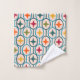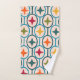 Este conjunto de toallas tiene un diseño moderno de mediados de siglo de círculos verde azulados unidos con estrellas dentro de cada uno en colores retro.