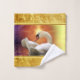 Cisne blanco en un lago con una puesta de sol dorada naranja. Con un fondo de textura de Relieve metalizado dorado.