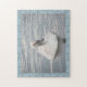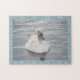 Este divertido rompecabezas presenta una fotografía de un adorable cignet en un lago con un fondo de patrón de puntos abstracto azul.
