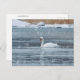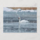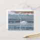 Natación de cisnes en las condiciones de invierno nevadas en la postal del Mar Báltico.