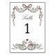 Celebre su amor con estas encantadoras tarjetas de número de mesa, que presentan un diseño encantador de dos cisnes adornados con ramas de olivo y cintas. Un delicado lazo rojo y un corazón acentúan la parte superior, creando una atmósfera caprichosa y romántica para su día especial. Estas tarjetas son perfectas para agregar un toque de elegancia y personalidad a la recepción de su boda. Úselas para guiar a sus invitados a sus asientos y mejorar la decoración de su mesa con un toque único y memorable.