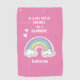 NewParkLane - Cute Personalized Kids's Golf Towel, con un arcoiris unicornio dulce, con una cita inspiradora que enseña a los niños que está bien ser diferente / ellos mismos: "¡En un cielo lleno de colores hay un arcoiris!", con un fondo rosa negrita (el color se puede alterar fácilmente).