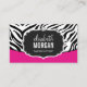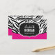 La Imagen De Ejemplo: Impresión De Cebra Negra Funky De Moda - Plantilla De Tarjeta De Cita Personalizada De Estilo Cabello. Todos los estilos de texto, colores, tamaños se pueden modificar para adaptarlos a sus necesidades. Este es el diseño perfecto para Hair Stylist, Hairdresser, Makeup Artist, Massage Therapist y más. Si necesita alguna personalización, por favor contáctame.