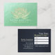 Yoga Studio Instructor de Meditación / Entrenador de vida / Healer / Reiki Master / Massage Therapy Nombrment Plantillas de tarjetas de visita - Modern Elegant Faux Relieve metalizado dorado Lotus sobre el fondo de la textura de oro verde.