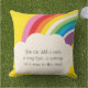 Añade fácilmente una cita de texto, nombre, letra de canción, un mensaje tanto en la parte frontal como en la parte posterior de esta colorida almohada de diseño de arcoiris y nube.