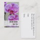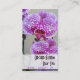 Este frente estándar de la tarjeta de visita con una orquídea púrpura abigarrada hermosa del Phalaenopsis también sabe como una "orquídea de polilla" diseñó como tarjeta de la cita. La parte posterior ofrece el espacio para la información de la cita. ¡Complete los campos de la plantilla de su información, QUITE el texto indeseado y la barra del texto o haga clic el personalizar él! para seleccionar un estilo de fuente, el tamaño y colorearle prefiere. Este diseño colorido de la fotografía de la flor pudo ser conveniente para los instructores de la yoga o de la aptitud, los terapeutas, los balnearios o su negocio.