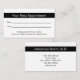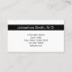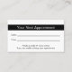 Esta tarjeta de recordatorio profesional para citas con médicos es de doble cara. La primera parte dice "Su próxima cita" y tiene líneas para la fecha y hora de la cita. En la parte inferior, hay un texto que puede editar para crear un mensaje personalizado si lo desea. (Muestra: Por favor, avise de 24 horas si no puede mantener su cita.) En la segunda cara se muestra el texto para reemplazarlo por el nombre del médico (o nombre de la práctica) y su dirección, número de teléfono y sitio web. Todo el texto se puede editar o eliminar. El texto es negro.