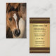 Tarjeta de visita con un caballo joven con la información de su personalizado al revés sobre un elegante fondo dorado/marrón. Esta tarjeta de visita es hermosa para cualquier persona que trabaje con caballos, personalizable para un alquiler estable, escuela de equitación, clínica, programa de mejoramiento u otros fines.