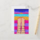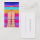 Esta colorida pintura de pies con uñas rojas disfrutando de la puesta de sol en la playa hace de esta tarjeta perfecta para los pedicuristas.