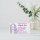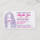 Este es un diseño de tarjetas de visita para peluqueros estilistas de peluquería en la comunidad afroamericana. Los colores son rosa y violeta. Imagen de chica vectorial con trenzas.