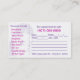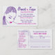 Este es un diseño de tarjeta de visita/tarjeta de cita para estilista/localista de peluquería en la comunidad afroamericana. Los colores son rosa y violeta. Imagen de chica vectorial con trenzas.
