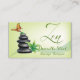 El Zen Contemporary Spa and Therapy masaje terapeuta Business Card incluye mariposa, piedras calientes y hojas de bambú