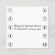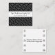 Esta parte frontal cuadrada de la tarjeta de visita presenta un fondo negro con un patrón de círculos delineados en blanco. Está diseñado como una tarjeta de puntuación de fidelización de negocios. Los círculos punch están contados en la parte de atrás con un mensaje de gratitud. Rellene los campos de la plantilla con la información de la parte delantera y posterior, ELIMINE el texto posterior o haga clic en personalizar para seleccionar un estilo de tipo, tamaño y color que prefiera.