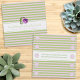 Este frente cuadrado de tarjetas de visita incluye lila pastel y rayas verdes con un rosa de acuarela morado. Está diseñado como una tarjeta punch de fidelización para pequeñas empresas. Los círculos punch coinciden con los colores de rayas de la parte posterior con un mensaje de gratitud. Rellene los campos de la plantilla con la información de la parte delantera y posterior, ELIMINAR cualquier texto o hacer clic en personalizar para seleccionar un estilo de tipo de letra, tamaño y color que prefiera.