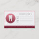Tarjeta de visita dental de la oficina del dentista limpio elegante de los dientes. Un fondo rojo moderno con el dentista del texto y dientes o diente blancos grandes en frente con el borde rojo sutil. en la parte trasera usted encontrará una sección agradable para sus citas pacientes. Vea nuestra tienda para los regalos y la ropa de la práctica dental para el dentista, el higienista dental y el ayudante de dentista. ¡Encuentre hilarantemente las tazas, los delantales y las camisetas divertidos del humor del dentista! ¡Más, también llevamos los imanes y los botones dentales del humor para llevar, para exhibir o para dar lejos!