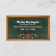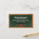 Tarjeta de la visita del profesor de escuela elegante, con los gráficos de la diversión de una pizarra pasada de moda en un marco de madera. Los gráficos lindos del estilo rural de una decoración de la manzana y de la vid en la parte inferior afrontan. El texto blanco en la pizarra está listo para personalizar. El espacio de la conferencia del padre/del profesor, en el dorso de la tarjeta se hace en negro en un fondo blanco. Plantilla agradable de la tarjeta de visita para los profesores y los profesores particulares.