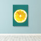 Una porción bonita y colorida de una pintura original del artista Sacha Grossel. Este gran cítrico de arte pop es amarillo y muy luminoso y colorido con un fondo de color azul verde azulado personalizable. Excéntrico y original.